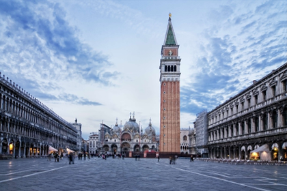 - Venice: Walk to St. Mark's Square to see St. Mark's Basilica, bell tower, clock tower, Doges' Palace and Bridge of Sighs.